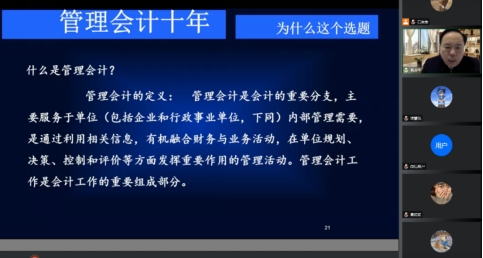 与智能管理会计研究院以线上会议的形式邀请了中国盐业集团有限公司总会计师蒋占华先生做专题讲座。蒋总的报告题目为《央企集团业绩评价与管理激励》。