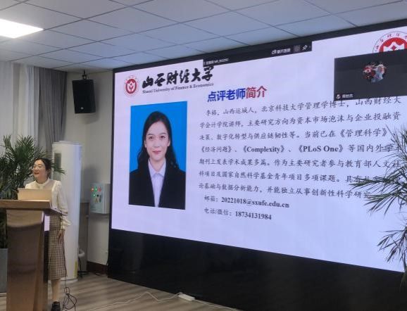李格博士做出了评价,她表示论文内容丰富、规范、有一定的现实意义。同时,她指出文章中普惠金融定义不够清晰,文献综述不够详细,数字化程度分维度的影响机制逻辑略有混淆,中介机制显著性较微弱,二阶段最小二乘估计没有显示回归结果等问题。并建议徐书苗同学在理论分析处引用前人文献,从已有文献中企业创新的影响因素中选择控制变量,选择更为合适的工具变量和中介机制。