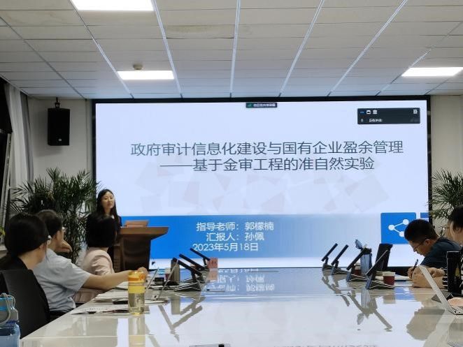 硕士研究生孙佩汇报了自己的工作论文,题目为《政府审计信息化建设与国有企业盈余管理——基于金审工程的准自然实验》。