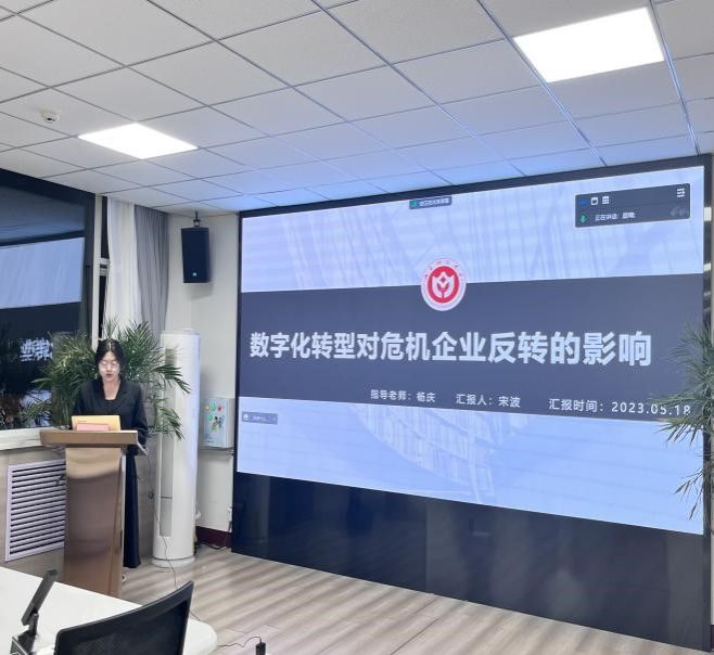 宋波硕士汇报了自己的工作论文,题目为《数字化转型对危机企业反转的影响》。
