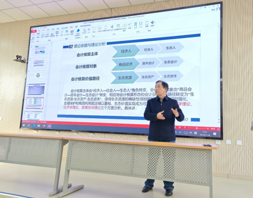 邀请我国环境资源会计领域专家,南京信息工程大学商学院袁广达教授进行学术交流。袁教授是中国会计学会理事、中国会计学会环境资源会计专业委员会委员、中国环境科学学会环境经济学分会常务委员、国际生态经济协会(IEEPA)常务理事,他出版著作5部、教材10部,发表学术论文180篇,获各种科研成果奖30项,主持并撰写的民盟中央重点调研课题报告《健全生态补偿机制,完善重点生态功能区转移支付》于 2019 年3 月获国务院总理重要采纳批示。