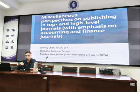 师生带来一场精彩的学术讲座。本次学术活动由会计学教研室承办,李颖副院长主持。陈锦全教授曾获美国国务院富布赖特学者奖,他的研究领域涉及绿色金融、首次公开募股、公司治理及分析师行为等,迄今在《Management Science》《Journal of International Business Studies》《Contemporary Accounting Research》等国际期刊发表学术论文300余篇,审稿超过500次,是全球金融教育领域的顶尖学者之一。