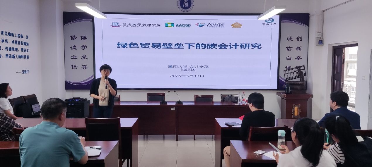 邀请我国环境资源会计领域专家、暨南大学管理学院沈洪涛教授进行学术交流。沈教授长期从事企业低碳管理与可持续发展会计研究,先后主持国家社科基金重点项目、自科基金面上项目,在《经济研究》等国内外学术期刊发表论文多篇。