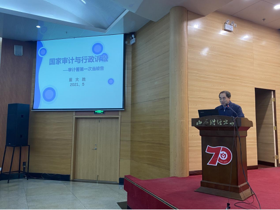 立信报告厅举行。董大胜研究员连续作了“新中国审计法制的演进及思考”和“国家审计与行政诉讼——审计署第一次当被告”两场学术报告。第一场报告会上,他从宪法、审计法和国务院颁布的审计行政法规及其他规范性文件三个层次,按照时间先后脉络,详细梳理了新中国成立以来审计法制的演进过程以及具体的内容修改,并向对大家分享了有关审计法制在不断演进中的几点思考。第二场报告会上,董大胜介绍了行政诉讼法有关被审计机关的相关内容,通过一项真实案例详细介绍,详细生动地说明了审计机关应对行政诉讼的具体实践,并在最后分享了他对审计机关应对行政诉讼的思考与看法。