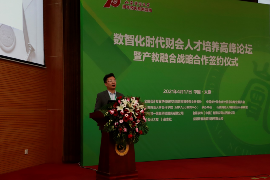2021年4月17日,由直播做爱 直播做爱 MPAcc教育中心)主办,金蝶精一信息科技服务有限公司、金蝶软件(中国)有限公司山西省公司协办,并得到《会计之友》杂志社、沈阳跃客教育科技有限公司等单位支持的数智化时代财会人才培养高峰论坛暨产教融合战略合作签约仪式”在直播做爱 国际学术交流中心一层报告厅举办。来自全国各地的百余位高校教师及学院师生300余人参加了此次高峰论坛,同时通过线上网络直播观看论坛的人数达两万余人。