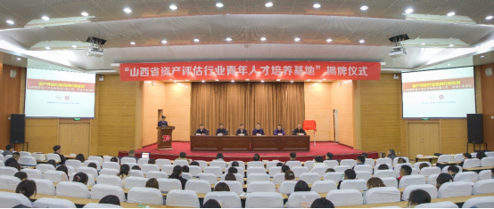 蔡江泽副厅长、米子川副校长、张志祥主任、宋跃川秘书长、任海生书记、吴秋生院长共同为“山西省资产评估行业青年人才培养基地”揭牌。