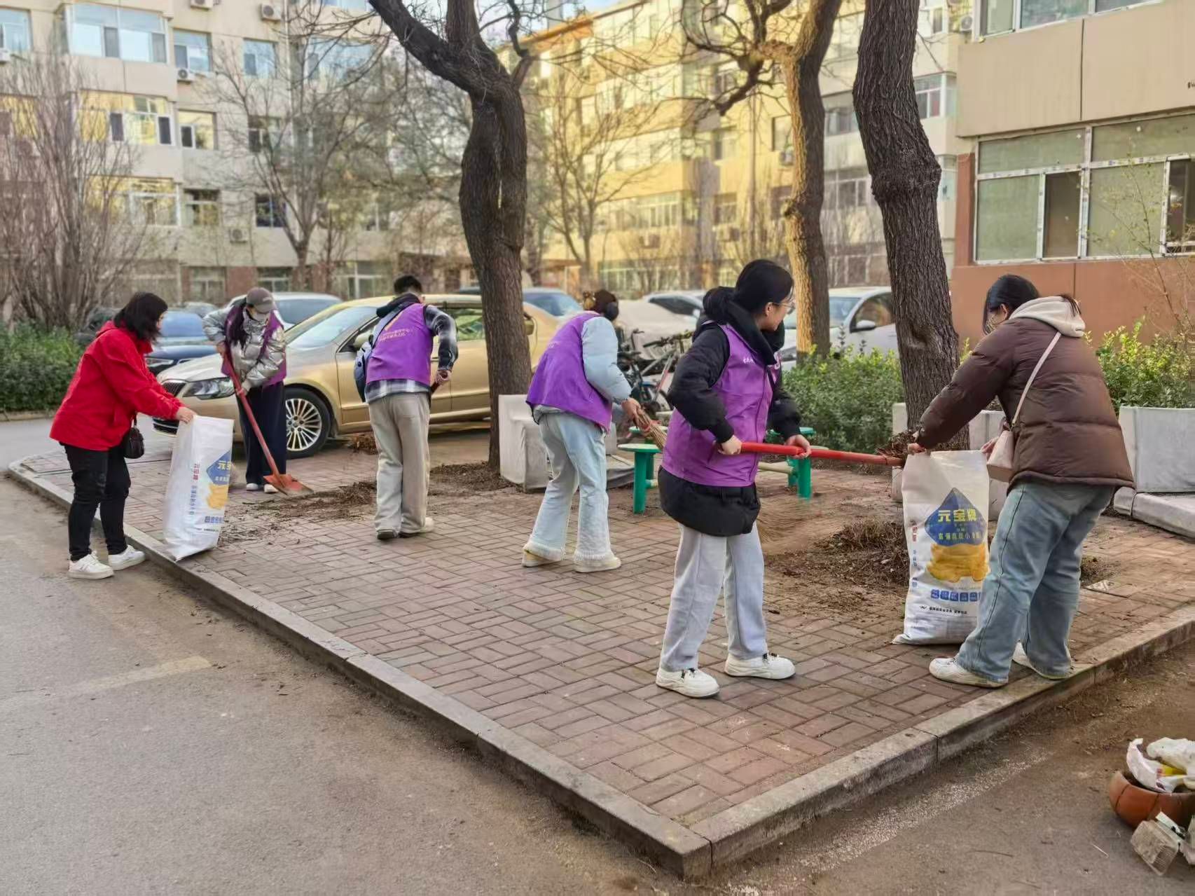 活动现场,身着“会计紫”马甲的青年志愿者们精神饱满、分工协作,成为社区里一道流动的青春风景线。在社区工作人员的引导下,志愿者们分为两组同步推进整治工作:一组沿着社区主干道、院落通道开展“拉网式”清扫,弯腰捡拾烟头、纸屑,徒手搬运废弃杂物,用扫帚清扫枯枝落叶,确保路面干净整洁、无堆积无死角;另一组深入绿化带、墙角缝隙等卫生盲区,细致捡拾隐藏其中的塑料瓶、包装袋等各类垃圾,并用分类垃圾袋做好分拣处理。劳动过程中,志愿者们不怕脏、不怕累,用汗水践行奉献精神,用行动传递文明理念。不少居民主动加入清扫队伍,或送来饮用水表示慰问,现场呈现出“青年带头干、居民齐参与”的良好互动氛围。